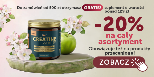 Monohydrat kreatyny może prowadzić do zatrzymywania wody podskórnej, co może wywołać efekt opuchlizny. Jednak w moim produkcie Creatine Woman KWB znajduje się jabłczan kreatyny oraz 7 innych pomocniczych składników, które nie powodują opuchnięcia ciała.