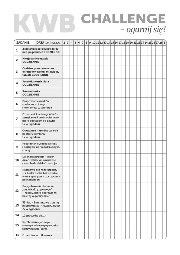 – Tych 5 zadań wykonujesz każdego dnia trwania wyzwania – bez okrężnych dróg i bez odhaczania z góry.