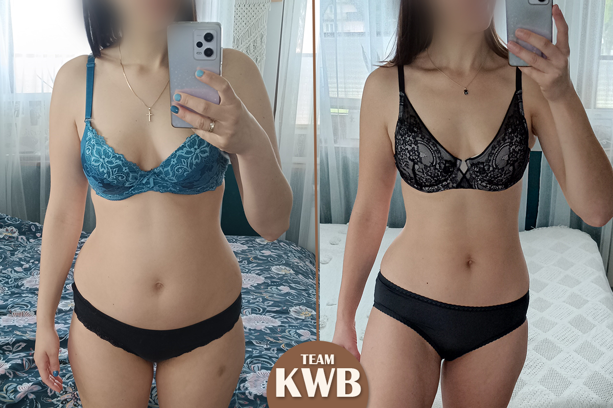 Wprowadziła w życie moje wskazówki – węglowodany jadła w drugiej części dnia, korzystała z przepisów z bloga i sięgnęła po suplementy, które dały jej energię i lekkość: KWB Slim Effect i KWB Water Out.