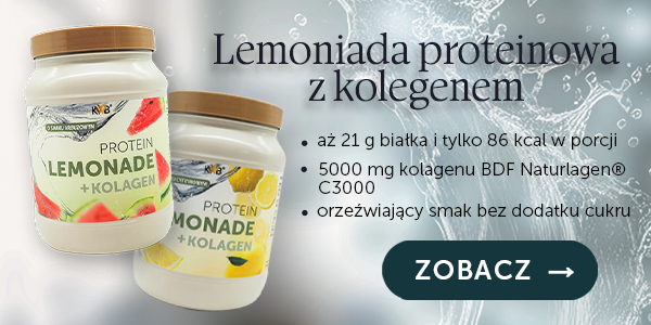 Dla osób, które wolą lżejszą formę niż klasyczny shake, alternatywą jest lemoniada proteinowa z dodatkiem kolagenu– również bez laktozy i kazeiny, bez problemów ze wzdęciami i gazami.